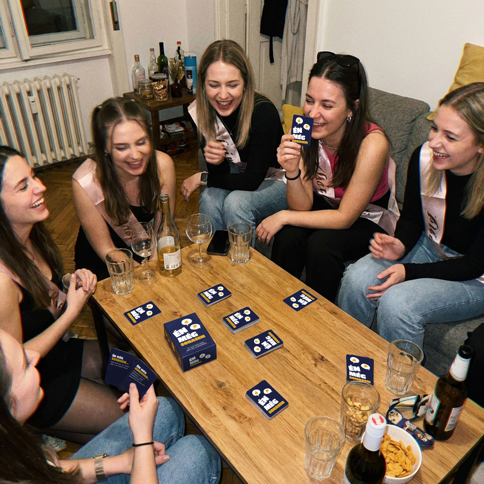 Tanúként vagy koszorúslányként ezer dolgod van: dekoráció, helyszín, torta, programok. Az Én Még Sohasem kártyajátékkal egy kész programot kapsz a kezedbe. Csak vedd ki a paklit a táskádból, és már indulhat is a játék – nem kell kellékeket gyártanod vagy bonyolult szabályokat magyaráznod.