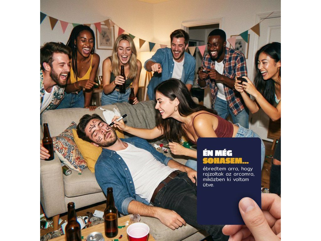 Ez a tökéletes játék, hogy megismerd az új barátaidat, vagy olyan dolgokat tudj meg a régiekről, amiket a legmerészebb álmaidban sem gondoltál volna róluk! Az Én még sohasem az egyik legismertebb ivósjáték az univerzum történetében. Éppen ezért a szabályai egyszerűek és közismertek, de azért foglaljuk most össze őket egy példával: A kihúzott kártyán az áll, hogy „Én még sohasem pislogtam”. Ha te már pislogtál, akkor igaz rád ez a kártya és kapsz egy pontot/innod kell egy felest. Ha még nem, akkor nem igaz. Ezt az alap ivósjátékot bolondítottuk meg néhány extra játékmóddal, amiknek a pontos leírását a csomagban található játékmód kártyákon találod.